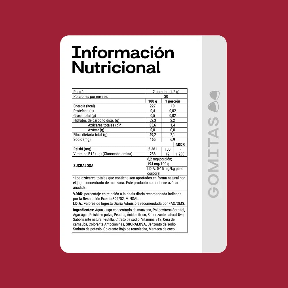 Reishi de NewPharma es un hongo funcional en formato de gomitas con sabor a uva. Disfruta de los beneficios de un hongo funcional en un formato práctico y delicioso para mejorar tu salud de manera natural.
