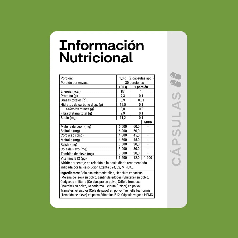 Fungi Complex de NewPharma es un complemento alimenticio en formato de cápsulas que combina 7 hongos funcionales (Shiitake, Maitake, Cordyceps, Melena de León, Cola de Pavo, Reishi y Chaga). ¡Mejora tu salud de manera natural y práctica con Fungi Complex!