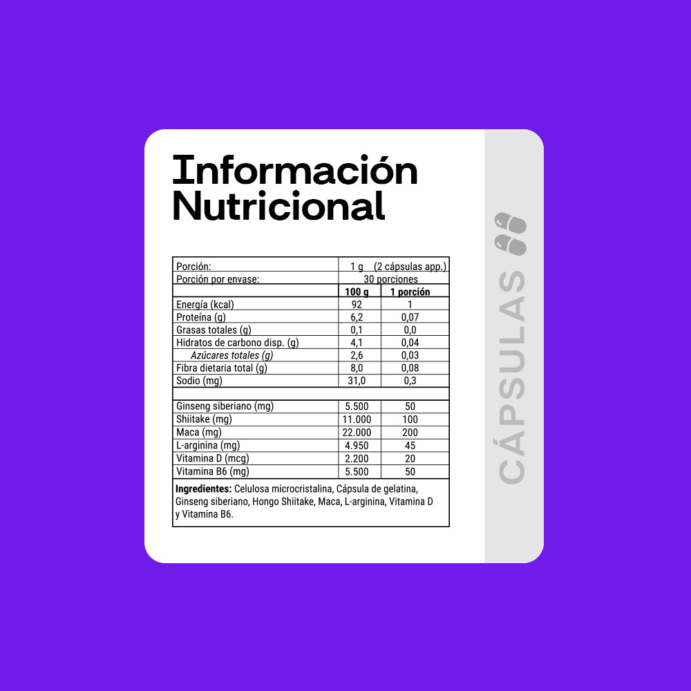 Su fórmula combina aminoácidos, hongos funcionales y vitaminas esenciales que apoyan la vitalidad física, el equilibrio hormonal y los niveles de energía.